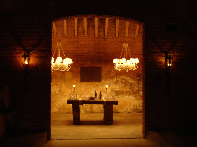the barrel room of Montes (where Gregorian music is played so that the wine can age in serene conditions!)